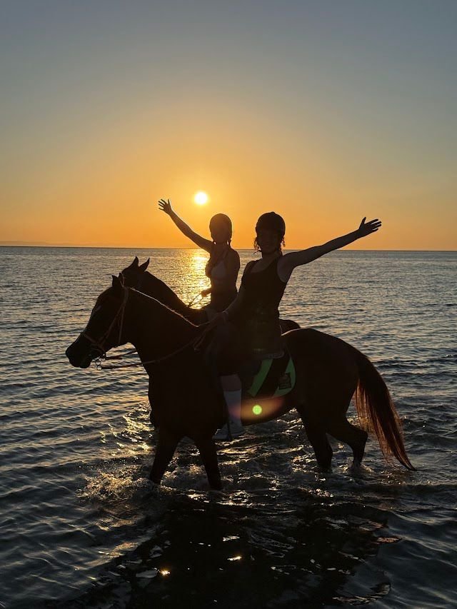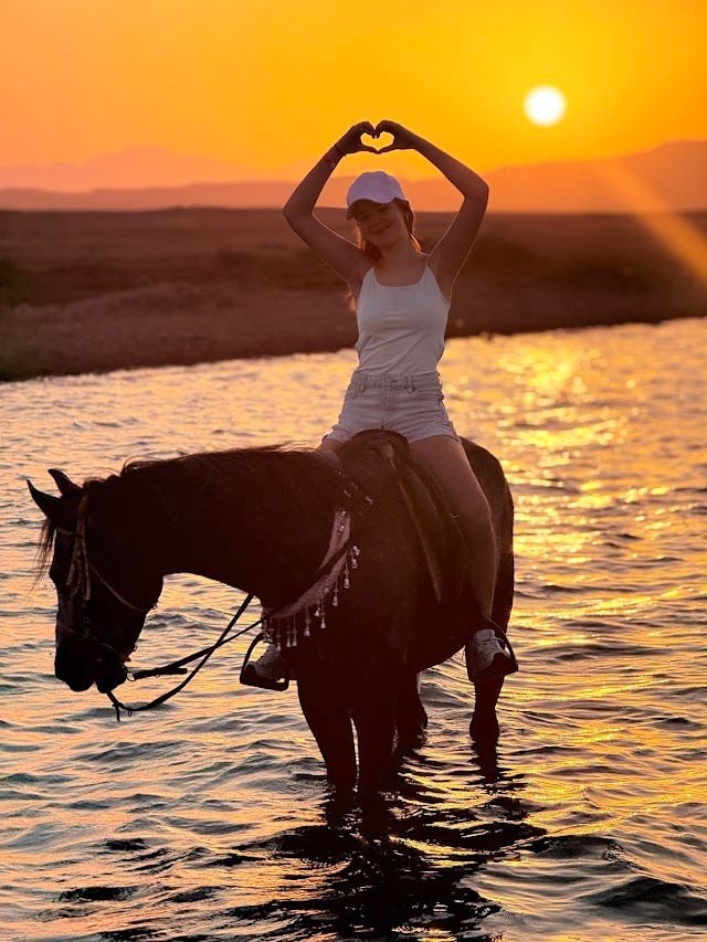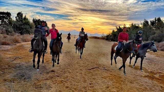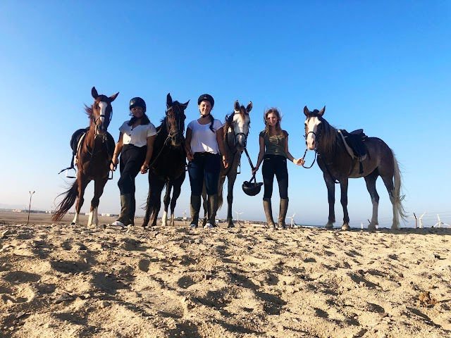 After the desert, we move to the beach for a completely different experience. You will walk horses on the soft sand next to the turquoise waters, and you can even swim with the horses to make it an unforgettable memory.