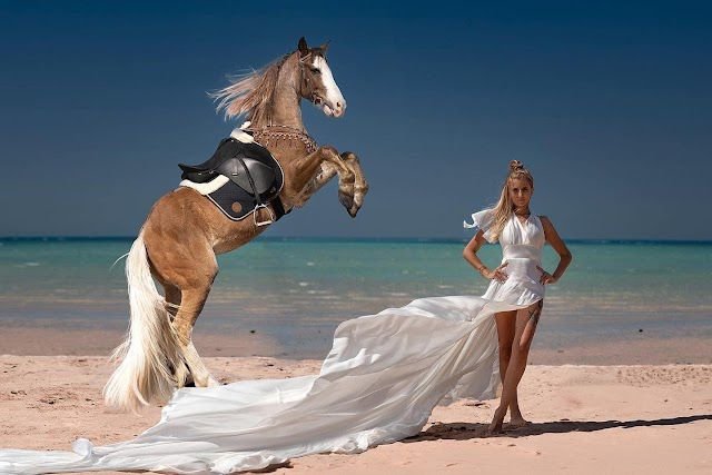Whether in the desert or at sea, a guide will help you take professional photos of you with the horses to immortalize these wonderful moments.